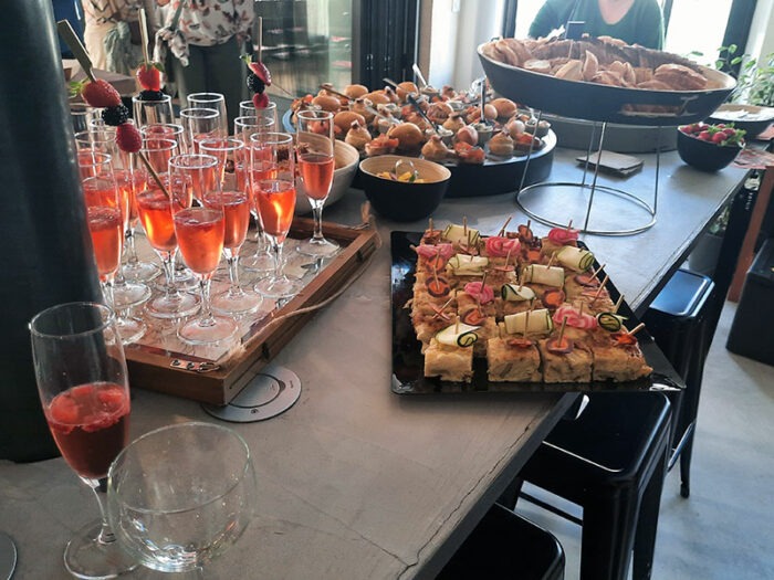 Cocktail au Champagne (« La bulle du Bassin ») accompagné d’une liqueur et sirop de coquelicot et fruits rouges
